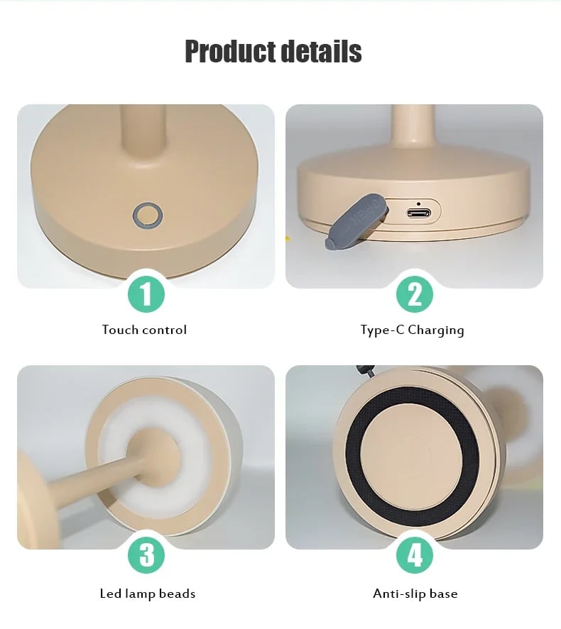 CORDLESS RECHARGEABLE TABLE LAMP : Battery operated lamp built-in high-quality rechargeable battery, which can be used for 8-15 hours when fully charged. Get rid of the shackles of traditional wired desk lamps. You can place the cordless table lamps anywhere.